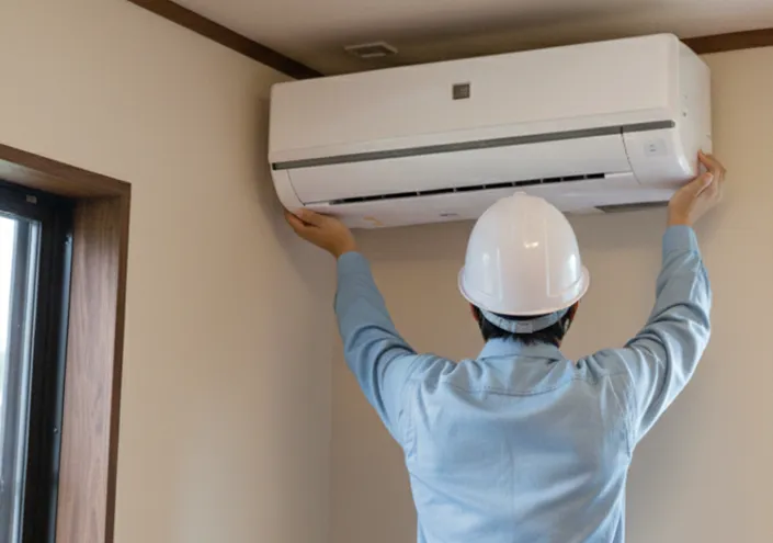 家庭用ルームエアコンの設置をいたします。新築、買い替え、リフォームなど状況に合わせて進めます。